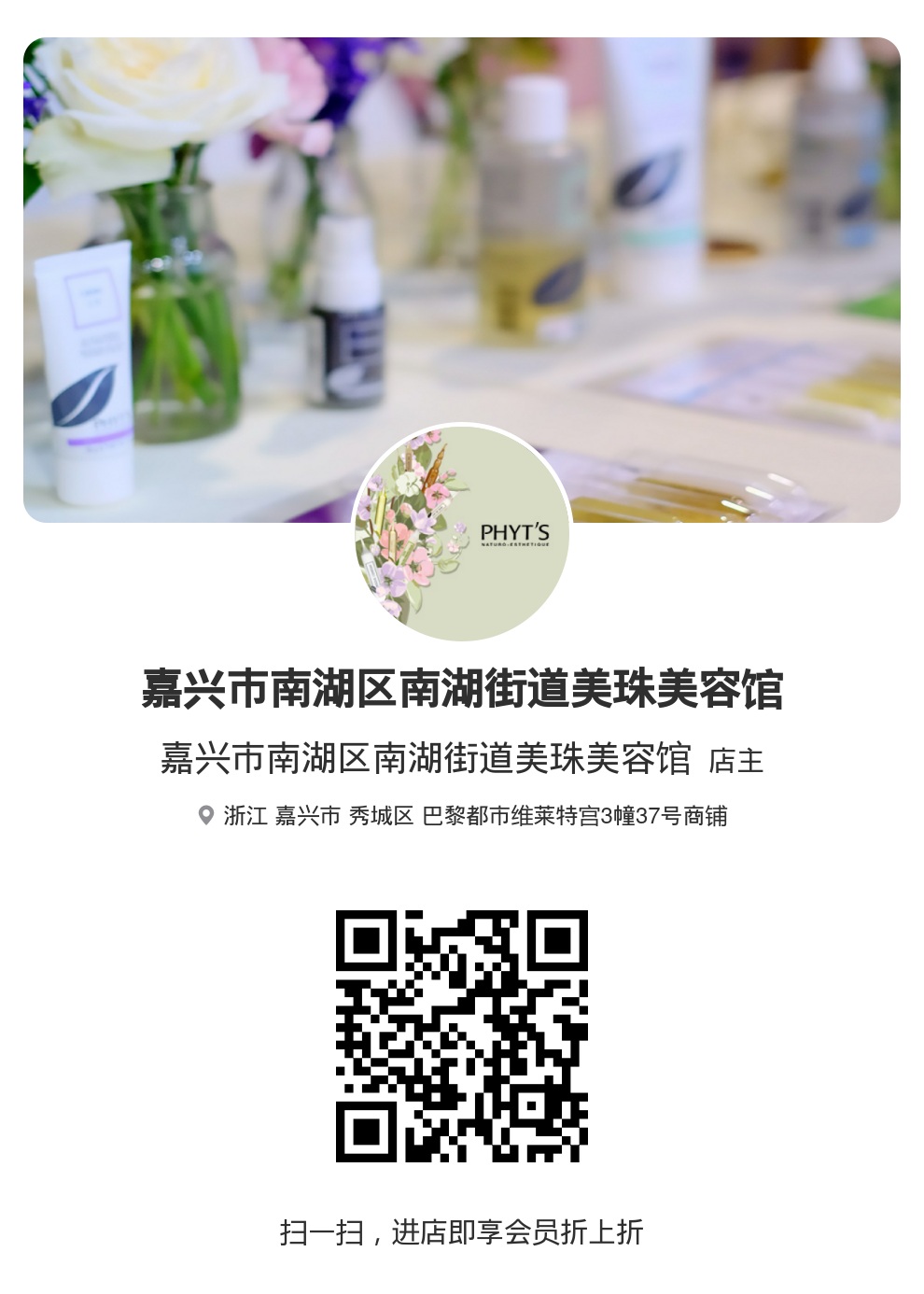 嘉兴市南湖区南湖街道美珠美容馆 - 门店地址 浙江 嘉兴市 秀城区 巴黎都市维莱特宫3幢37号商铺